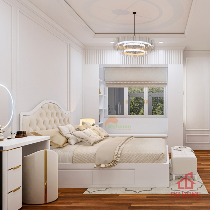 Mẫu Nội Thất Phòng Ngủ Tân Cổ Điển Hiện Đại Diên Tích 19m2