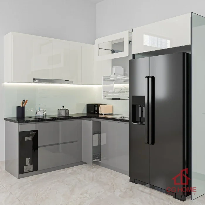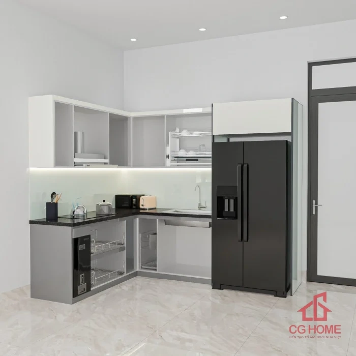 - Tối ưu không gian: Thiết kế chữ L tận dụng góc bếp, phù hợp với mọi căn hộ hoặc nhà phố.