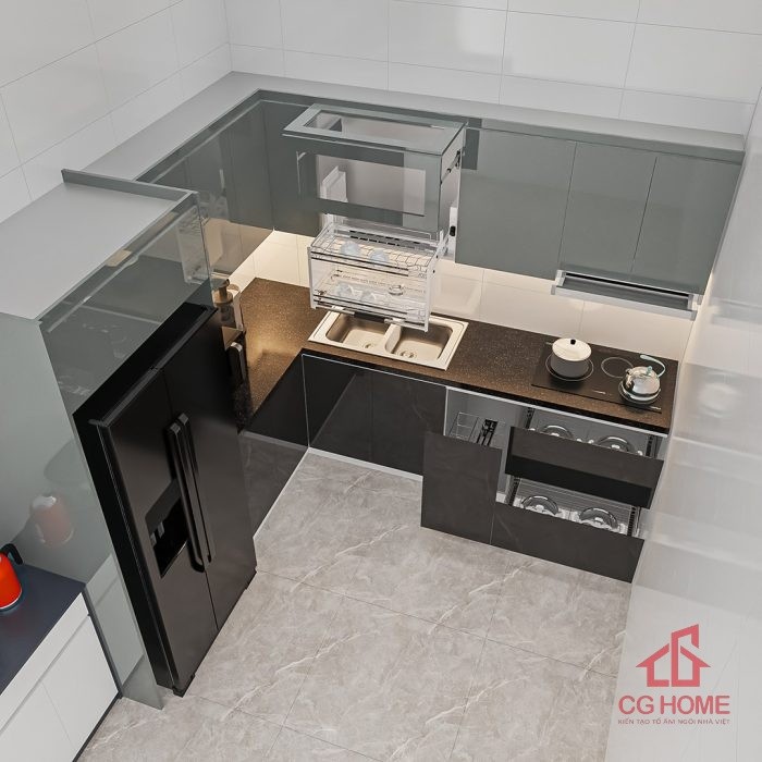 - Tối ưu không gian: Thiết kế chữ L tận dụng góc bếp, phù hợp với mọi căn hộ hoặc nhà phố.