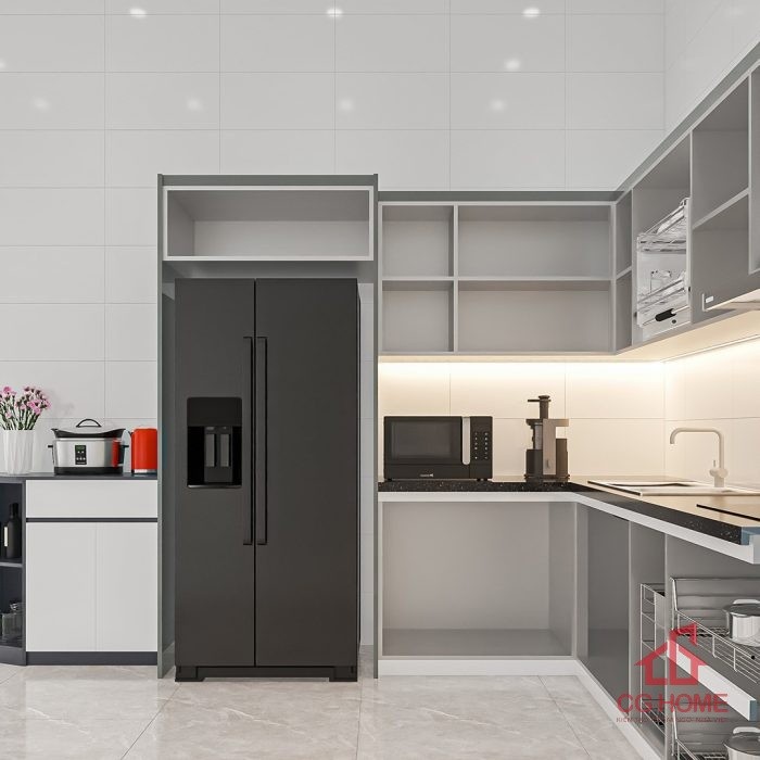 - Tối ưu không gian: Thiết kế chữ L tận dụng góc bếp, phù hợp với mọi căn hộ hoặc nhà phố.