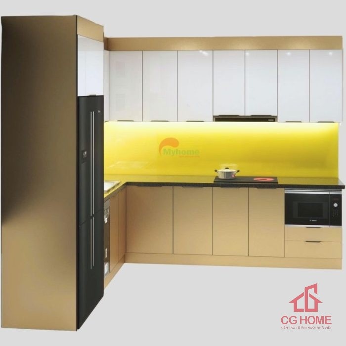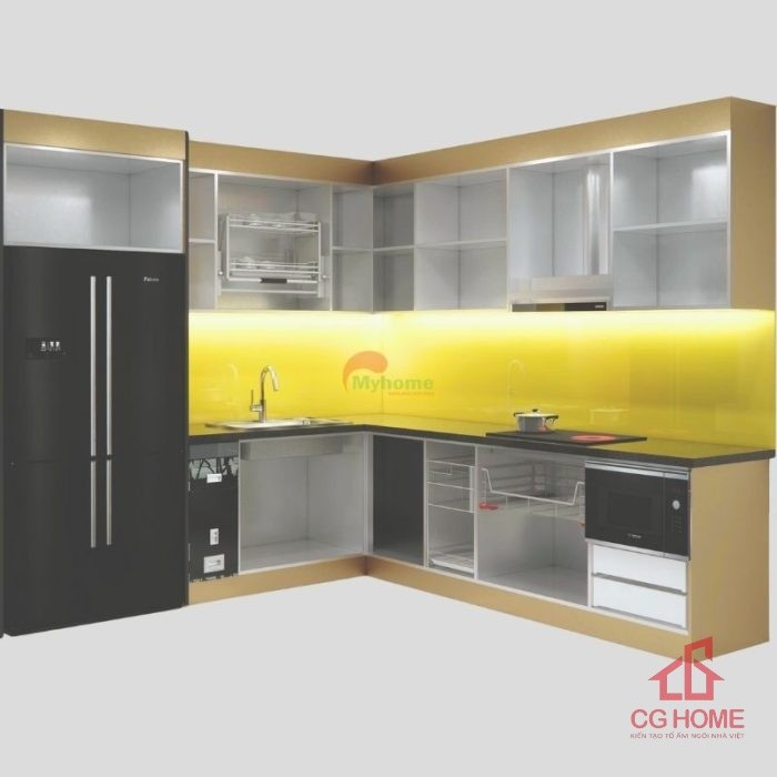 - Tối ưu không gian: Thiết kế chữ L tận dụng góc bếp, phù hợp với mọi căn hộ hoặc nhà phố.