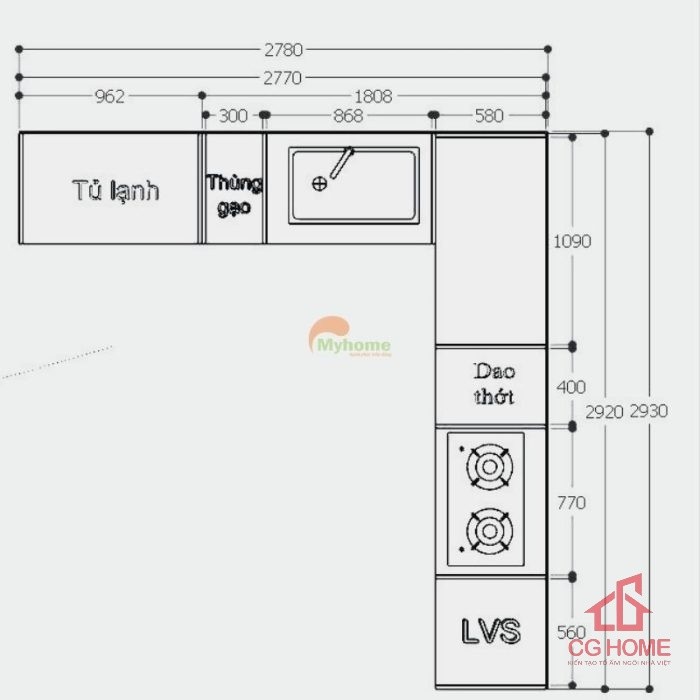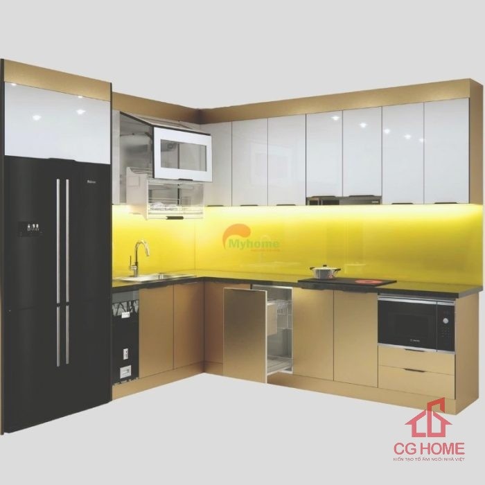 - Tối ưu không gian: Thiết kế chữ L tận dụng góc bếp, phù hợp với mọi căn hộ hoặc nhà phố.