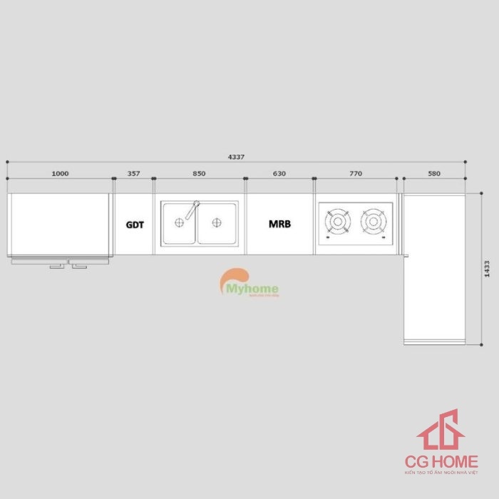 Tối ưu không gian: Thiết kế chữ L tận dụng góc bếp, phù hợp với mọi căn hộ hoặc nhà phố.