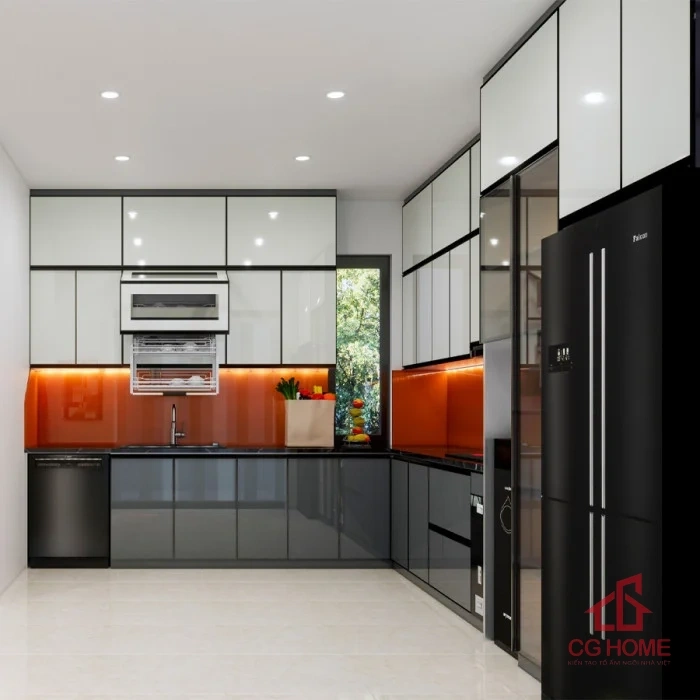 Nội Thất CGHome thi công Tủ bếp inox cánh kính chữ L4.5*3.3m tại Hưng Yên, Hà Nội, Hà Nam. Phục vụ Thái Bình, Hải Dương, Bắc Ninh với thợ tay nghề cao. Dự án tiêu biểu: Tủ bếp chữ L 4.5×3.3m tại Yên Mỹ, Hưng Yên, hoàn thiện 9 ngày.