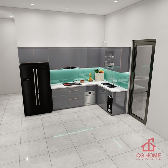 Không gian phòng bếp nổi bật với màu ghi xám