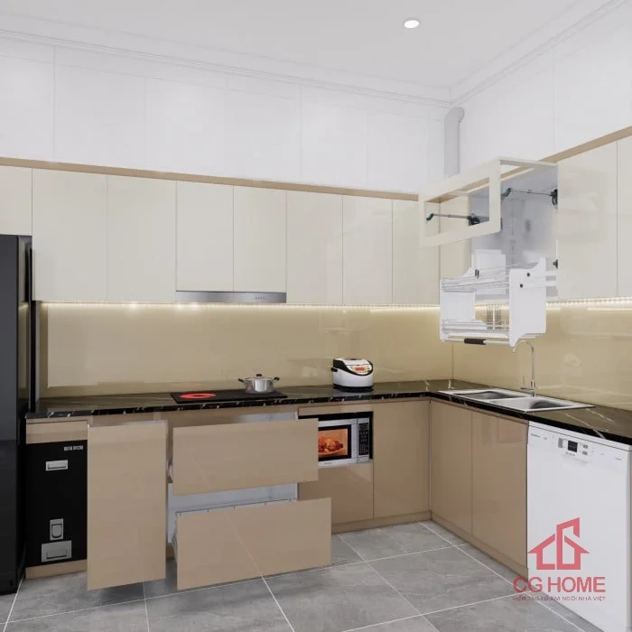 Mặt bằng công năng tủ bếp inox cánh acrylic 6.7m chữ LKhông gian bên trong tủ bếpTủ bếp inox đầy đủ phụ kiện cao cấpGiá bát nâng hạ và tay nâng tủ bếp cao cấpGiá xoong nồi và giá dao thớt cao cấpBẢNG GIÁ THAM KHẢO TỦ BẾP INOX CÁNH ACRYLIC 6.7MThôn