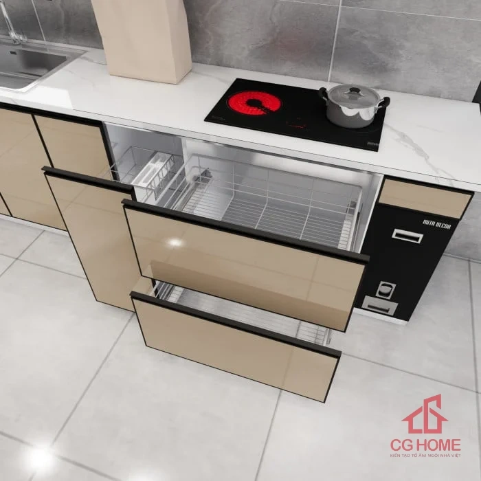 Phụ kiện tủ bếp đã bao gồm trong đơn giá, các sản phẩm phụ kiện chưa gồm trong đơn giá quý khách vui lòng mua ngoài hoặc ủy quyền cho chúng tôi.