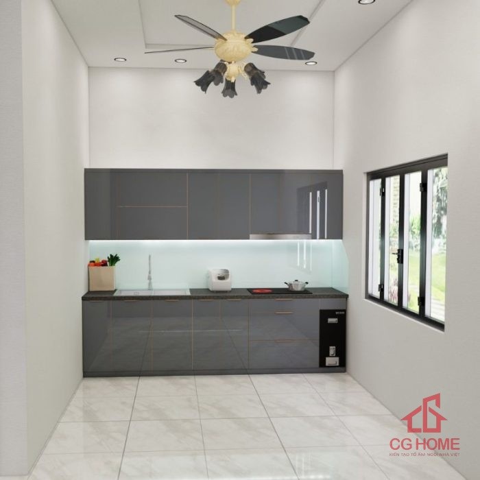 Không gian phòng bếp nổi bật với màu ghi