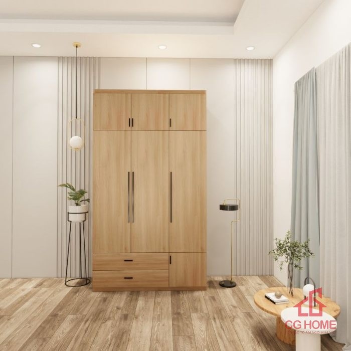 - Tối ưu hóa không gian lưu trữ: Tủ 3 cánh với nhiều ngăn kệ, móc treo giúp bạn sắp xếp quần áo, chăn màn và đồ đạc cá nhân gọn gàng, ngăn nắp, tiết kiệm diện tích phòng ngủ.