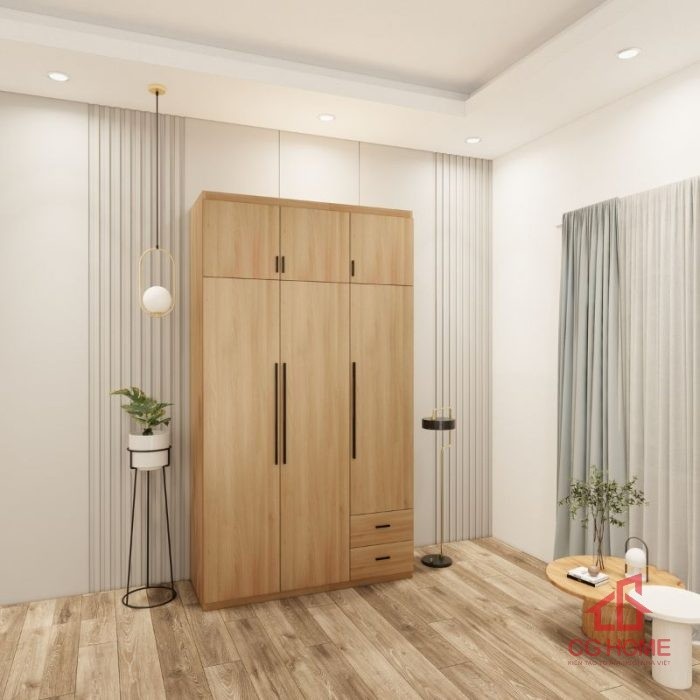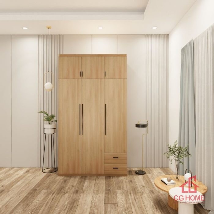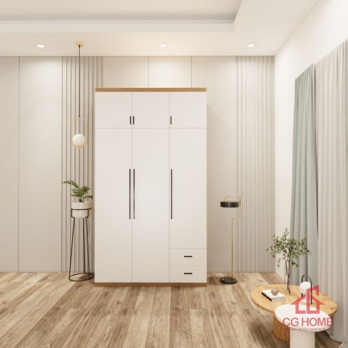 - Tối ưu hóa không gian lưu trữ: Tủ 3 cánh với nhiều ngăn kệ, móc treo giúp bạn sắp xếp quần áo, chăn màn và đồ đạc cá nhân gọn gàng, ngăn nắp, tiết kiệm diện tích phòng ngủ.