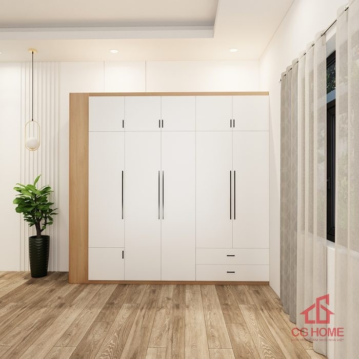 - Tối ưu hóa không gian lưu trữ: Tủ 6 cánh với nhiều ngăn kệ, móc treo giúp bạn sắp xếp quần áo, chăn màn và đồ đạc cá nhân gọn gàng, ngăn nắp, tiết kiệm diện tích phòng ngủ.